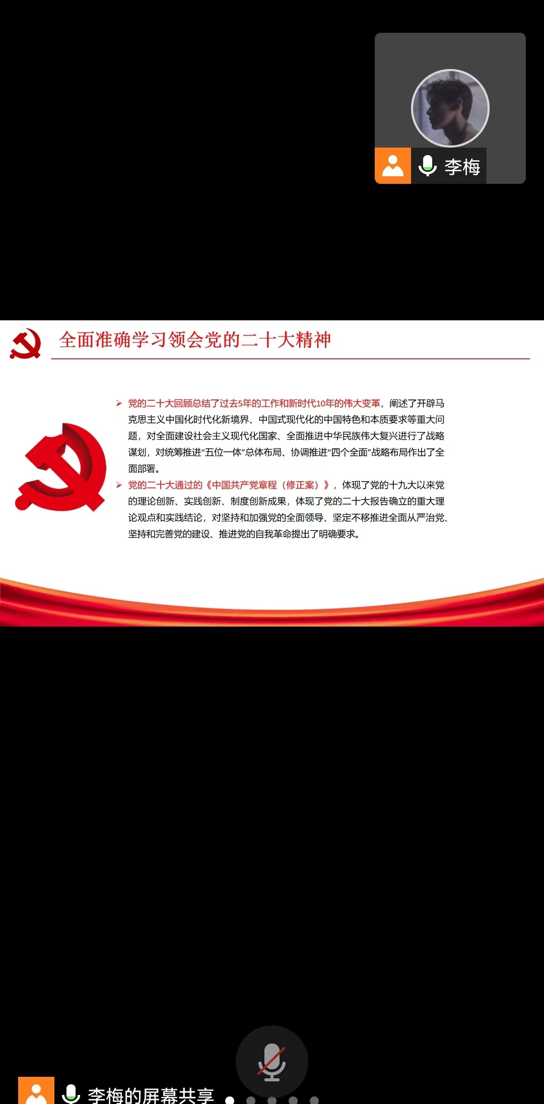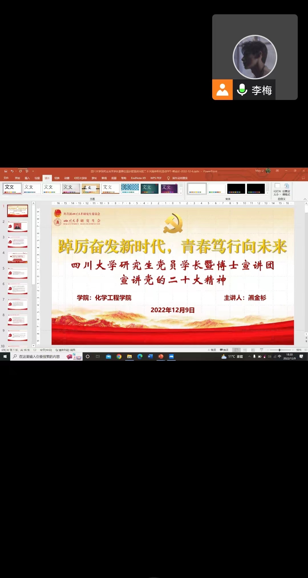2022年12月9日下午6:30,由于疫情防控需要,Mksport体育研究生第二党支部采用线上的方式开展了学习党的二十大精神的活动以及关于是否确定汪小坤同志发展为中共正式党员的讨论表决大会。会议由支部纪检委员熊金衫同志主持。