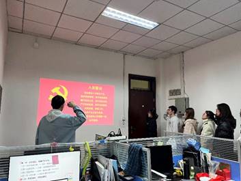接着,与会其他成员纷纷对唐郭璇同志与朱晨同志发表了意见。经过支部成员不记名投票,一致同意唐郭璇同志与朱晨同志发展为中共预备党员,最后邓松同志带领全体成员宣读了入党誓词。
