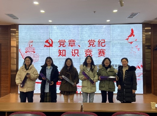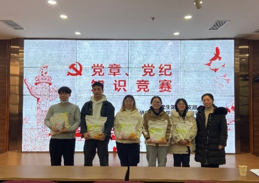 活动开始后,大家踊跃举手进行抢答,最终经过激烈的比拼以及加时赛后,共决出了十名单人赛的同志、三队多人赛的同志们获得优胜,活动结束后谢锐老师一一为他们进行了颁奖和合影。谢锐老师肯定了他们的表现,也对大家踊跃举手参加活动的这种氛围表示了肯定,她希望大家能够在活动结束后进一步学习党章、党纪。