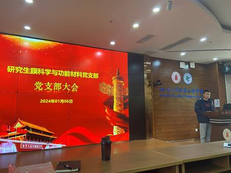 2024年1月6日下午13:20,中共Mksport体育研究生膜科学与功能材料党支部于化工楼313会议室召开了接收预备党员和预备党员转正支部大会。本次大会由支部书记王坡同志主持,分为两个议程,主要讨论和审议接收党员发展对象杨丽、赖俊华同志为预备党员及陆广源、王志巍等六位预备党员转正的相关事宜。
