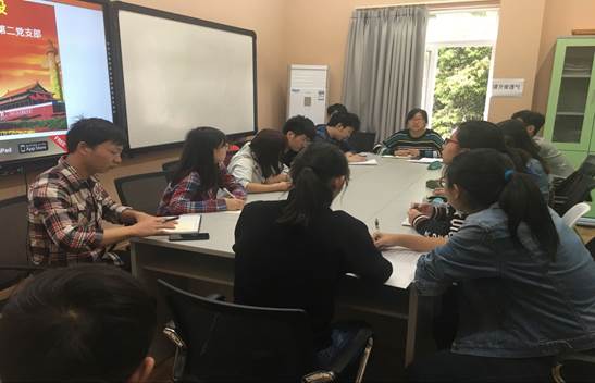 首先,作为主题演讲第二小组的发言人,陈曦同学,介绍了本次党组织生活会的主题,围绕主题的三个重点词汇,她从国家方面、从自身方面谈到了它们各自代表的含义,并提出,十九大报告中,习近平总书记开宗明义,强调了共产党人的初心和使命是“为中国人民谋幸福,为中华民族谋复兴”。而同时习近平总书记指出,目前,国内外形势正在发生深刻复杂的变化,我国发展仍处于重要战略机遇期,前景十分光明,挑战也十分严峻。所以,作为双一流大学的党员,我们更要记住我们的初心,担负我们的使命,建设好我们的一流。