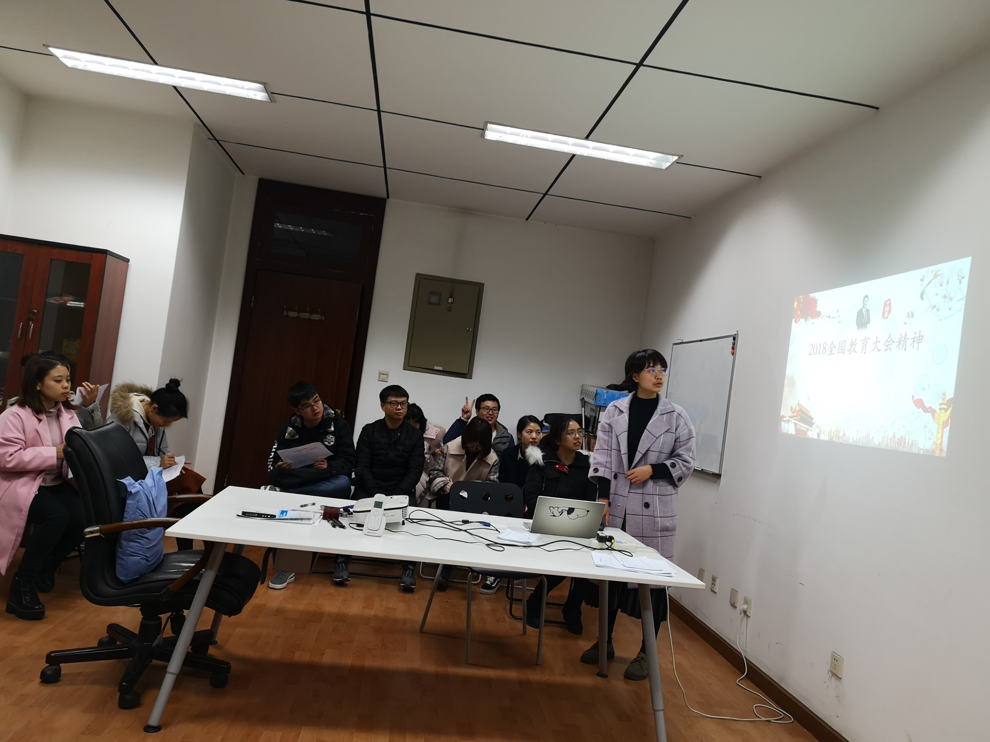 本次支部大会首先开展第一个议题,习近平总书记全国教育大会上重要讲话内容的相关专题学习与讨论。该部分由支部党员汪莹同志做学习报告,习近平总书记提出教育是民族振兴,社会进步的重要基石,是功在当下、利在千秋的德政工程,对提高人民综合素质,促进人全面发展、增强中华民族创新活力、实现中华民族伟大复兴具有决定性意义。