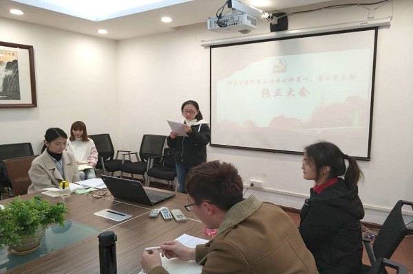 为吸纳优秀人才以不断壮大党员队伍,2018年12月6日晚19:00,化学公程公司研究生膜科学与功能材料第一党支部在化工楼227会议室隆重举行了2018年秋季预备党员转正大会,对谭昕玥、蒲兴群两位同志的转正问题进行了讨论。会议由党支部书记徐敏航主持,第一党支部全体党员参加了此次会议。
