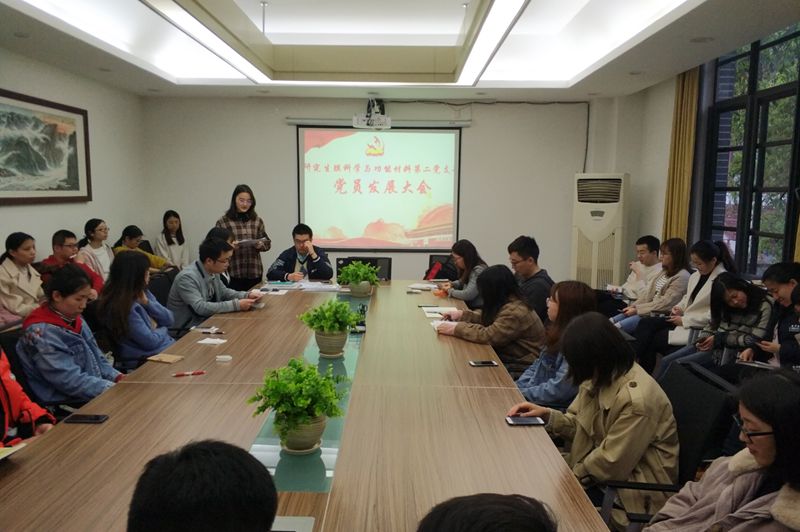 Mksport体育研究生膜科学与功能材料第二党支部于2019年3月26日晚18:30于化工楼227会议室召开了接收预备党员支部大会。本次大会由支部书记尹微虹主持,主要讨论和审议接收党员发展对象吕荥宾同志为预备党员的相关事宜。