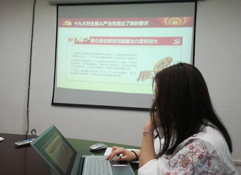 在学习过程中,李倩,杨怡等同志积极发言,分别说出各自对党风廉洁教育的理解。其中战琳月同志说到:党风廉洁教育对党员的党性会有很大的帮助和提升,能够更加深刻的认识自己,同时做出相应的改变,让自己成为更加优秀的共产党员。