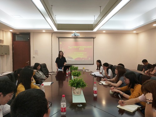 本次会议由第二党支部书记尹微虹同志主持。首先尹微虹同志向大家详细地介绍了《中国共产党纪律处分条例》针对管党治党中的突出问题和新违纪情形,在“六项纪律”(六项纪律分别为:政治纪律、组织纪律、廉洁纪律、群众纪律、工作纪律和生活纪律)里分别增写、改写的多处处分规定的相关内容。尹微虹同志表示此次修订前一版《中国共产党纪律处分条例》的基础上把党内法规制度进一步向前推进,表明了以铁的纪律管党治党的决心。随后,支部党员同志们对针对本次学习会展开讨论,交流学习心得。其中曾崇阳同志谈到,党员同志要做遵守纪律的模范,更重要的还是要身体力行,拿出实际行动,将遵纪守法的习惯体现到日常工作、生活的言行中,作为研究生同学,一样需要注意养成自觉遵纪守法习惯。