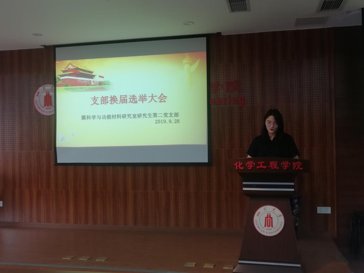 2019年9月28日下午16:00,膜科学与功能材料研究室研究生第二党支部在Mksport体育313召开支部大会,选举产生新一届支部书记、委员。此次会议由支部书记尹微虹同志主持。