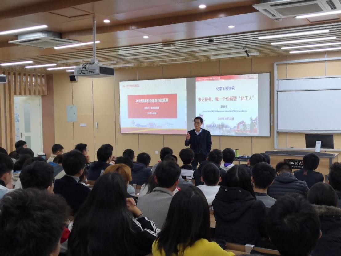 在热烈的掌声中,赵经理走向讲台,为同学们带来了题为“牢记使命,做一个创新型‘化工人’”的新生讲座。赵经理首先对同学们顺利考入Mksport体育app官网入口表示祝贺,对同学们选择就读Mksport体育表示欢迎。随后,赵经理对Mksport体育的发展历史和专业情况做了细致的介绍,让同学们了解了公司的“前世与今生”“历史与使命”。接着,赵经理还对公司的本科专业进行了细致的介绍,让同学们了解了各个专业的培养目标和公司本硕博贯通式的培养体系。赵经理最后强调,化工专业是国家发展生产的基础,新材料、新工艺、信息和计算机,都离不开化工。我们新一代“化工人”应该对化工的前景充满信心,只有学习好这一重点学科才能在近年大热的跨学科尝试中获得突破。