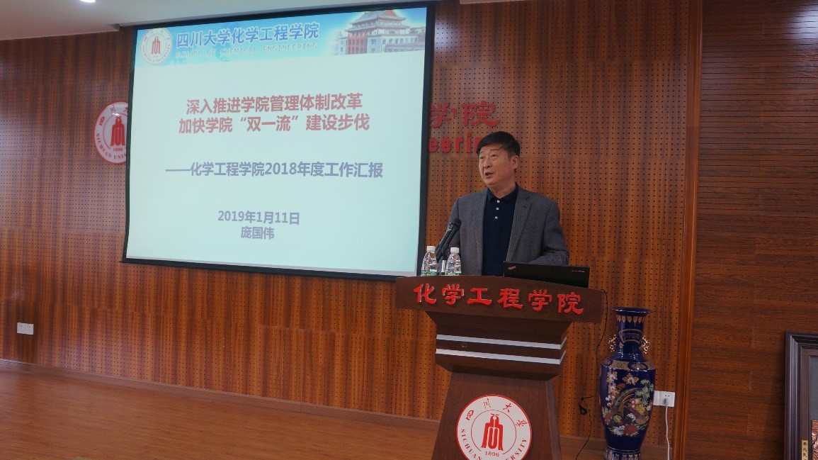 会议听取了公司党委书记庞国伟同志代表公司所做的《公司工作报告》和《财经工作报告》。庞书记在报告中全面回顾和总结了2018年全院工作。2018年是全面贯彻党的十九大精神的开局之年,是庆祝改革开放40周年,也是公司深化改革创新、加快推进“双一流”建设和校院两级管理体制改革的关键之年。公司全体师生深入学习贯彻习近平新时代中国特色社会主义思想和党的十九大精神,科学研究、人才培养、党建工作和队伍建设等方面都取得了显著成就:褚良银教授等获得2018年度国家技术发明奖二等奖;杰出教授钟本和先生获得“2018年度何梁何利奖”;公司获准国家重大项目2项,直接经费1800多万元。由钟本和教授带领团队入选全国首批“全国高校黄大年式教师团队”;梁斌教授获得国家级教学成果奖一等奖,宋航老师当选“四川省优秀教师”。同时,我们的党员师生充分发挥先锋模范作用,化学工程系党支部成功入选“全国党建样板支部”,研究生过程装备与安全科学党支部获得全国高校“百个研究生样板党支部”,党员罗杰同志获评“2017年度四川省优秀共青团员”和四川“勤学奋进新青年”。庞书记也代表公司对全院师生员工和离退休老同志在过去一年对于公司工作的帮助和支持表示感谢。随后,庞书记结合公司“两个伟大”的全面推进和校院两级管理体制改革,提出了2019年的工作展望,他希望全院师生共同努力,集中精力抓好一流拔尖人才、一流团队队伍、一流学科平台、一流成果转化机制、一流国际合作交流、一流环境条件建设,全力推进一流学科、一流专业建设,为早日建成一流Mksport体育而努力奋斗!