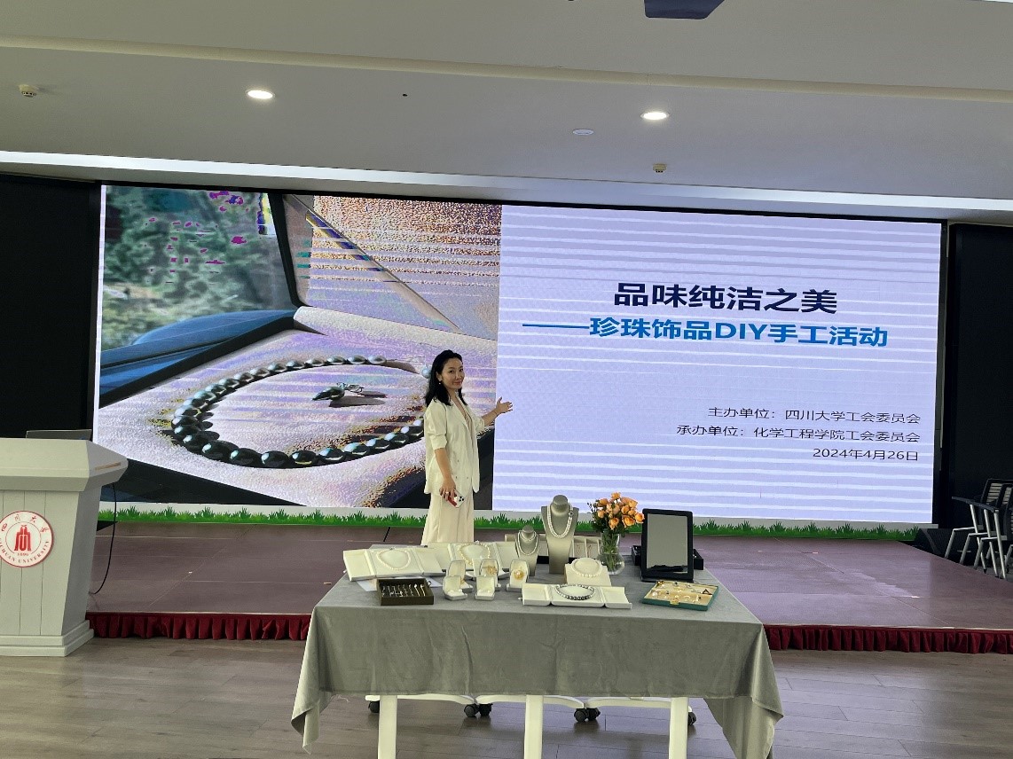 4月26日下午,由Mksport体育app官网入口工会主办、Mksport体育工会承办的“品味纯洁之美——工会珍珠品鉴及珍珠饰品制作活动”在文华活动中心六楼多功能厅顺利举办,活动吸引了来自校内多个单位50余位女职工的热情参与。