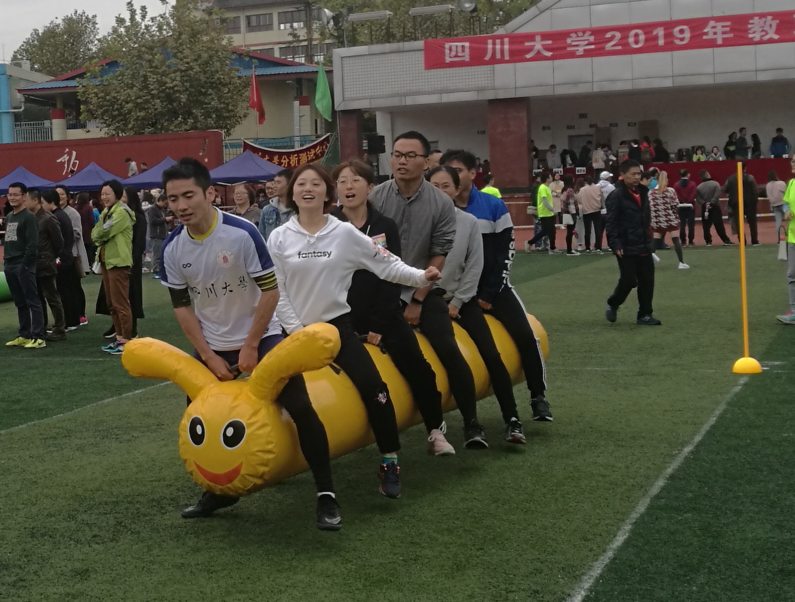 公司工会认真做好Mksport体育app官网入口2019年教职工运动会的各项准备工作,分阶段的精心组织,保证了包括教职工田径比赛、教职工趣味活动比赛等各项比赛的顺利进行并取得了非常好的比赛成绩。虽然现场风大雨大,但老师们的运动热情丝毫没有减退。大家充分发挥奥林匹克精神,泥泞的沙土里留下了大家坚实的脚印。满是水坑的赛道上,大家毫不畏惧的风里拼搏。集体跳绳比赛上,即时脚滑跌倒也一定坚持到最后一秒。经过大家的不懈努力,公司获得了包括毛毛虫比赛第3名、男子跳远比赛第8名和集体绕杆射门第11名的好成绩。公司党政办、公司工会委员及部分工会小组成员在运动会现场组成后勤服务队,积极主动为参赛队伍呐喊助威,做好后勤服务工作。