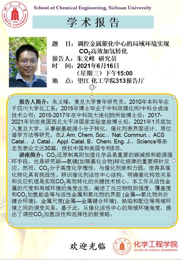 “化工学术大讲堂”系列高端学术报告(第八十期)
