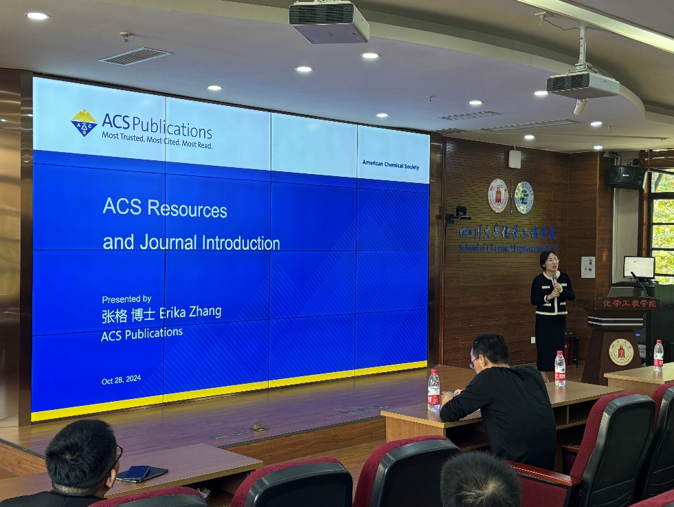 随后,中国区ACS材料类和纳米类期刊负责人张格博士作报告,她深入浅出地介绍了ACS(美国化学学会)期刊的最新动态、投稿要求以及ACS期刊的影响力和重要性。此外,张格博士与在场师生进行互动探讨。