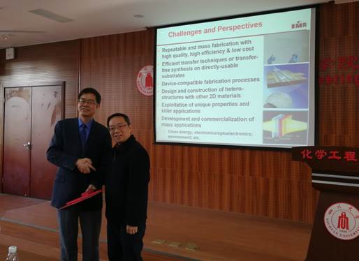 2017年11月30日上午10:00,中国科公司院士、发展中国家科公司院士、炭材料科学家成会明教授应邀做客化工学术大讲堂系列讲座,并在Mksport体育313报告厅作了“石墨烯等二维材料的制备与应用探索”为题的精彩学术报告。报告开始前,公司庞国伟书记与成院士进行了交流沟通。本次讲座由Mksport体育副经理唐胜伟教授主持,来自Mksport体育、材料公司、高分子科学与工程公司等相关公司师生聆听了本次学术报告。
