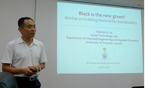 2015年7月16日下午,加拿大多伦多大学Charles Q Jia教授在望江校区Mksport体育235会议室为公司师生带来了一场精彩的学术报告——“Black is the new green?——Biochar as an enabling material for sustainability”,报告由Mksport体育经理褚良银教授主持。