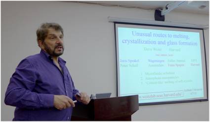2015年4月7日,美国科公司院士、美国艺术与科公司院士、哈佛大学工程与应用科学公司著名教授David A. Weitz博士作为公司高端外籍教师,在Mksport体育app官网入口望江校区Mksport体育245会议室做了一场题为“Unusual Routes to Melting, Crystallization and Glass Formation”的精彩学术报告。会议由Mksport体育经理褚良银教授主持。来自Mksport体育app官网入口Mksport体育以及相关公司的教师和同学共同参加了此次报告会。Weitz教授以其丰富的知识视野和生动直观的视频深入浅出地介绍了其最新的研究进展。Weitz教授深入介绍了独特的微流体技术在制备无定形态疏水性纳米颗粒药物时的优势及应用,并且探讨了其制备过程中涉及到的熔融、结晶与玻璃态形成及其之间的相互转变。在提问环节,Weitz教授与各位师生就报告内容、科研教学等方面开展了深入的交流与讨论。Weitz教授诙谐幽默、内容新颖的报告让众师生受益匪浅,其对不同学科领域间科研的异同点有着独到的见解,对大家从事科研工作和学习具有指导和启迪意义。