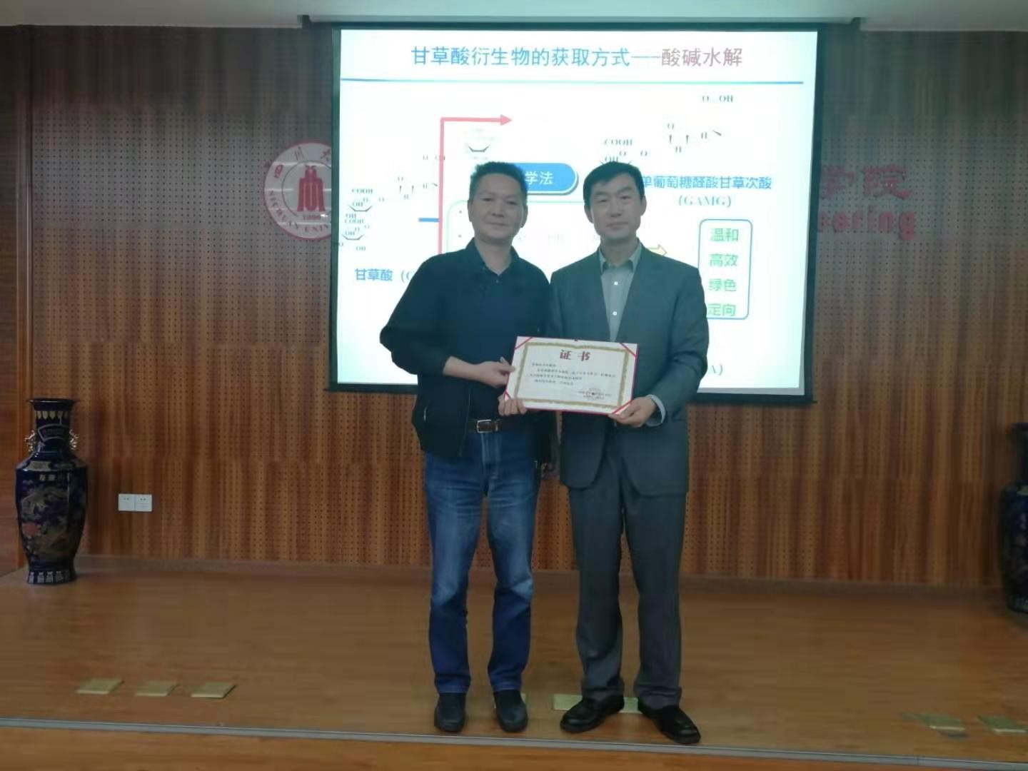 报告最后,张永奎教授为李春教授颁发了化工学术大讲堂荣誉证书,以感谢李春教授为公司师生带来的精彩报告。此次报告圆满结束。