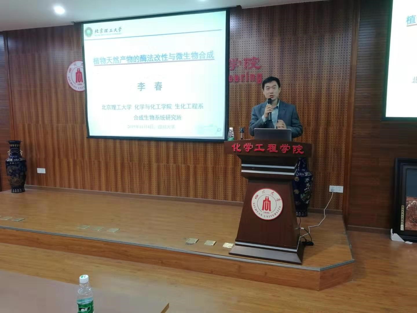 2019年11月4日,公司《化工学术大讲堂》邀请到北京理工大学化学与Mksport体育副经理李春教授,在Mksport体育313报告厅为公司师生做了题为《天然产物的酶法改性与微生物合成》的学术报告。公司唐盛伟副经理、钮大文副经理、经理助理兼制药与生物工程系主任李德富、张永奎教授、谢锐教授、刘文彬老师、葛黎明老师等教师和公司研究生近百人参加了此次报告会。