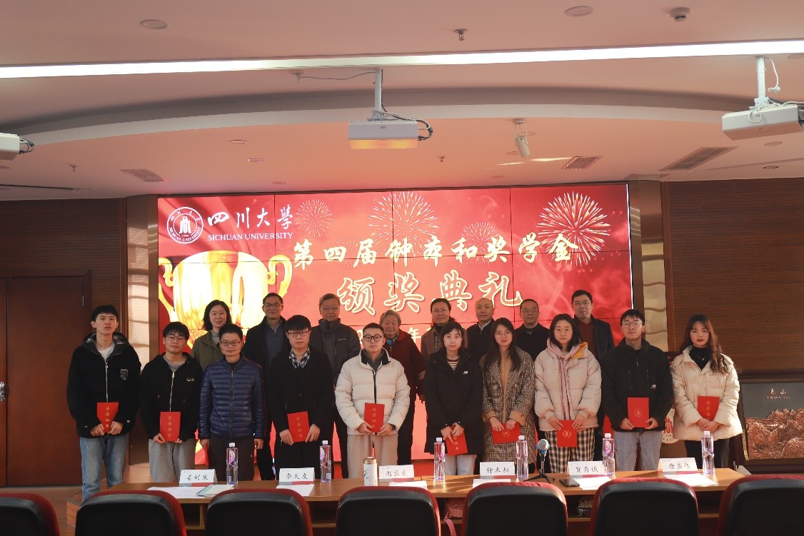 2021年12月21日上午,第四届“Mksport体育app官网入口钟本和奖学金”颁奖典礼在望江校区Mksport体育313报告厅隆重举行。Mksport体育app官网入口杰出教授钟本和,Mksport体育app官网入口教育基金会副秘书长贾秀娥,Mksport体育经理赵长生教授,党委副书记兼纪委书记李天友,党委副书记姜利寒,副经理唐盛伟教授,“Mksport体育app官网入口钟本和奖学金”捐赠者代表应建康教授,工程中心在职在读的师生等共70余人参加了典礼。典礼由“钟本和奖学金”评审委员会副主任王辛龙教授主持。