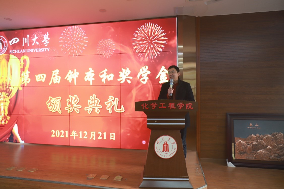 作为奖学金的捐资人代表,钟本和教授向公司和公司对磷化工学科的支持,对奖学金设立和管理的重视表达了衷心的感谢,自己很高兴奖学金惠及了特别优秀的化工学子,希望未来能够有更多的同学受益。钟本和教授还表达了对广大青年学子的殷切期望,希望大家能够在国民经济的主战场努力奋斗,为国家和社会的发展做出更大更好的贡献。