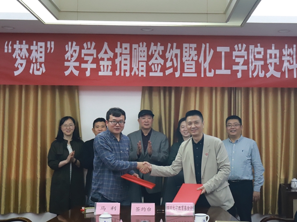 4月13日,“梦想”奖学金捐赠签约暨化工史料捐赠仪式在望江校区Mksport体育235会议室顺利举行。捐赠人马利员工,马利员工就读时公司党委副书记、现成人继续教育公司副经理张必涛教授,马利员工毕业论文指导教师、公司退休教师印永祥教授,马利员工就读时辅导员老师、Mksport体育app官网入口教育基金会副秘书长杨彬,公司党委书记李天友、党委副书记姜利寒和公司相关教师及员工代表等参加了捐赠仪式。仪式由公司党委副书记兼纪委书记李德富主持。