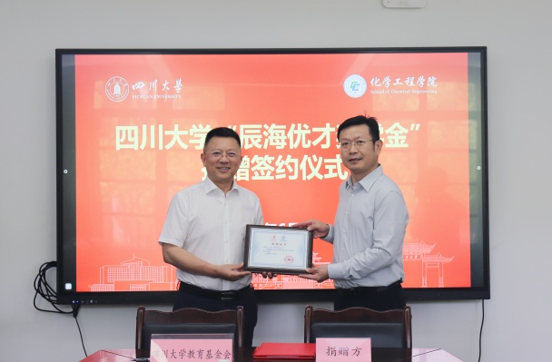 6月6日下午,“Mksport体育app官网入口-辰海优才奖学金”捐赠签约仪式在望江校区化工楼235会议室举行。圣凯西(上海)生物科技有限公司董事长、Mksport体育1991级精细化工专业员工邓朝庆、四川川大员工同创投资管理股份有限公司总经理迟小莉,公司党委副书记李正赤、公司相关部处和Mksport体育有关人员参加签约仪式。仪式由公司党委书记李天友主持。
