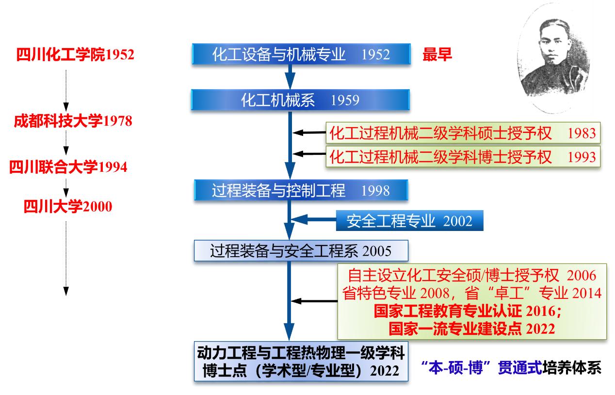 Mksport体育app官网入口过程装备与控制工程专业始创于1952年(化工机械与装备专业,全国最早),由中国化工教育家张洪沅教授首任专业教研室主任。现为四川省特色专业,四川省重点学科,四川省卓越工程师培养试点专业,2016年通过中国工程教育专业认证,2022年获批国家一流专业建设点,2025年软科最新专业排名全国第8。专业具备动力工程及工程热物理硕、博士学位授权点,动力工程专业学位硕、博士学位授权点、安全工程硕、博士学位授权点,形成了学术型/专业型“本-硕-博”贯通式培养体系。截止2023年,已招收65届本科生,累计培养毕业生6500余人。