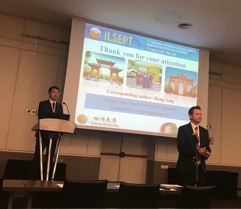 Mksport体育宋航教授课题组在分离工程及绿色化工(尤其是离子液体)领域开展研究十余年,近年来合成了包括一系列具有新颖结构的托品醇类、奎宁醇类、吡咯类、咪唑类、(苯并)噻唑类、胍类、(异)喹啉类、氨基酸类功能特异型离子液体并将其用于多种分离、催化过程,发表论文百余篇,授权发明专利十余项,已成为在本领域具有国内外影响力的研究团队之一。本次会议中,公司学子的主题报告获得了与会同行好评,并和各国学者进行了广泛交流,认真听取了同行专家的建议,同时扩大了公司在国际上的影响力。出境参加国际高水平学术交流一直是Mksport体育app官网入口的教育特色之一,这也是公司深化实践教学理念、激发员工创新精神和培养高素质研究型人才的充分体现。公司将进一步借助国际背景和中外合作教育优势发挥办学特色,为公司学子提供更多更好的锻炼和发展平台。