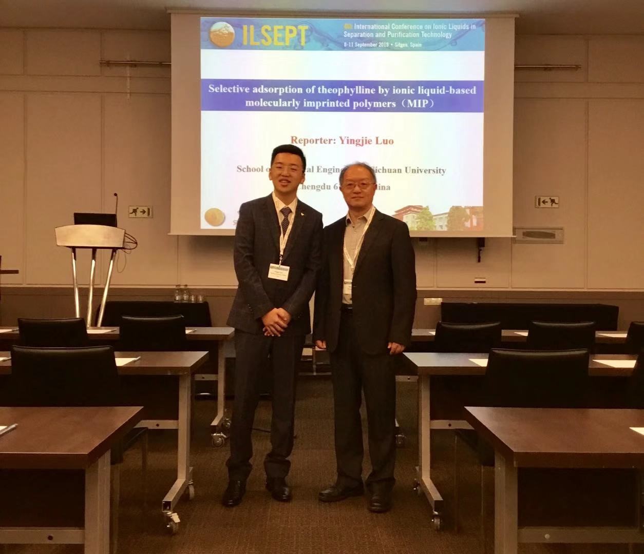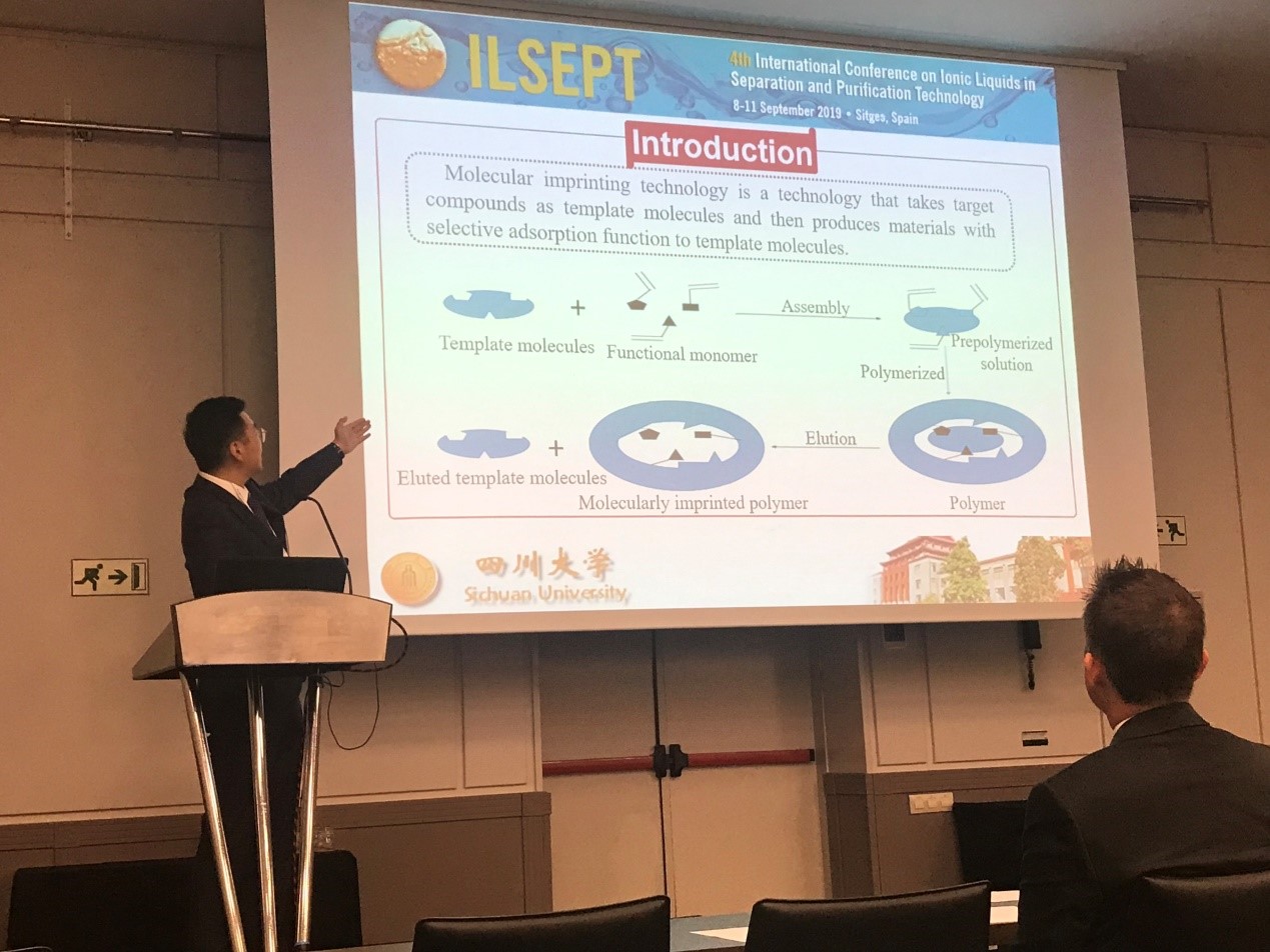 2019年9月8日—9月11日,第四届离子液体分离纯化国际会议于西班牙巴塞罗那顺利召开。公司制药工程专业二年级博士研究生罗英杰(指导教师:宋航教授)出席该会议并于大会上作题为“Selective adsorption of theophylline by ionic liquid-based molecularly imprinted polymers(MIP)”的研究报告。本次会议吸引了300多位来自世界各地从事分析化学、材料物理、物理化学、化学工程等不同研究领域的研究员、科学家、工程师和学者,是我们公司学子和国际高水平专家面对面交流的难得机会。