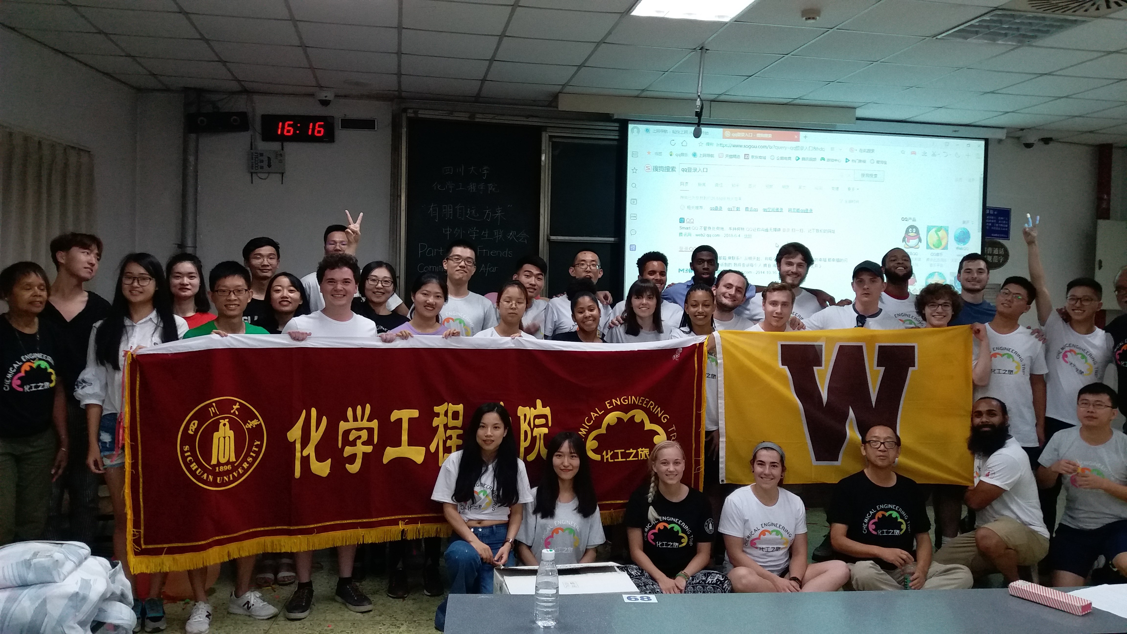 2018年7月18日,为了庆祝Mksport体育“国际课程周”课程的圆满结束,并为即将踏上归程的外国教授、同学们送别,Mksport体育在望江校区基础教学楼C座103举办了“化工之旅2018”国际交流营中外员工联欢会。