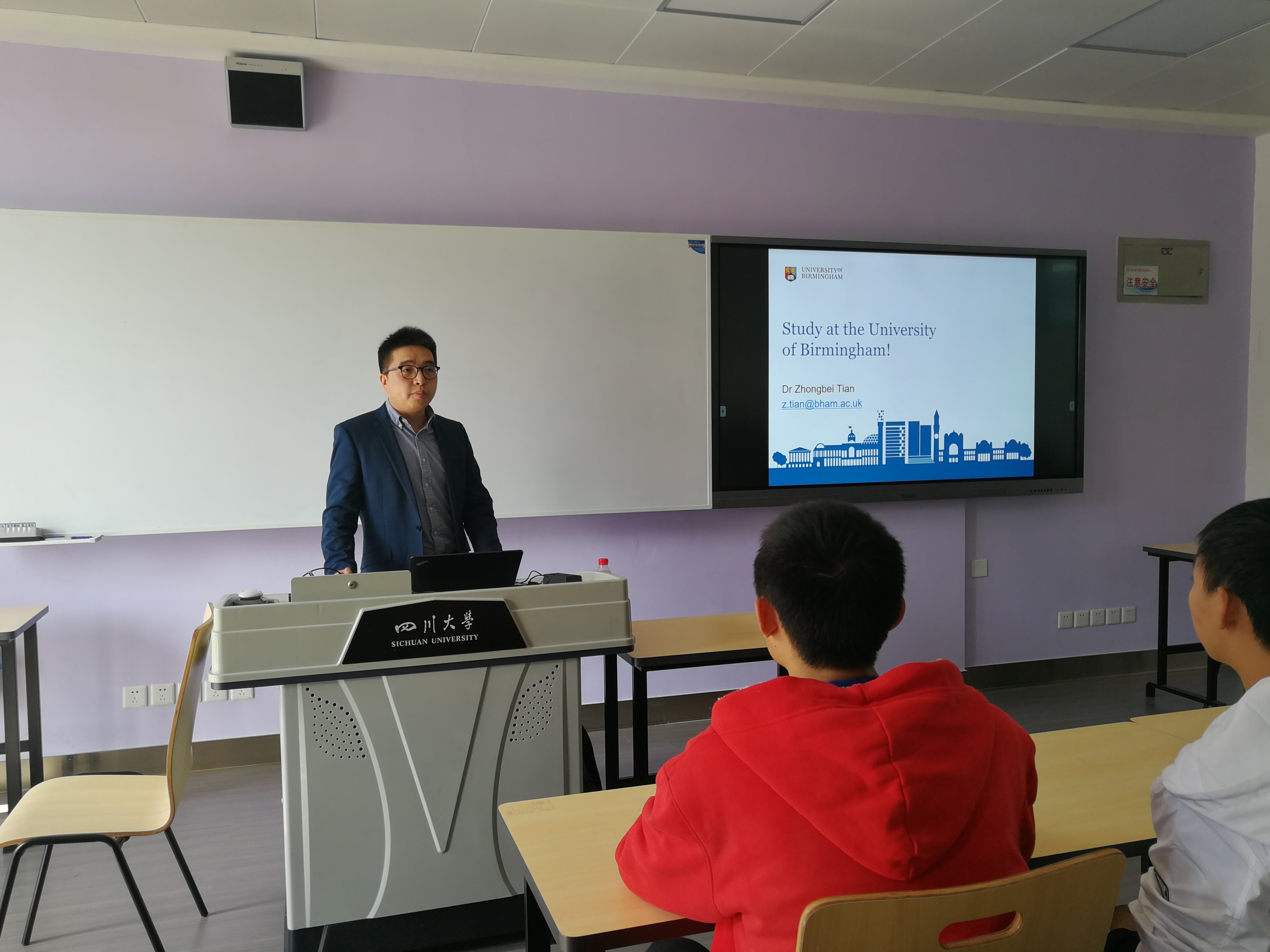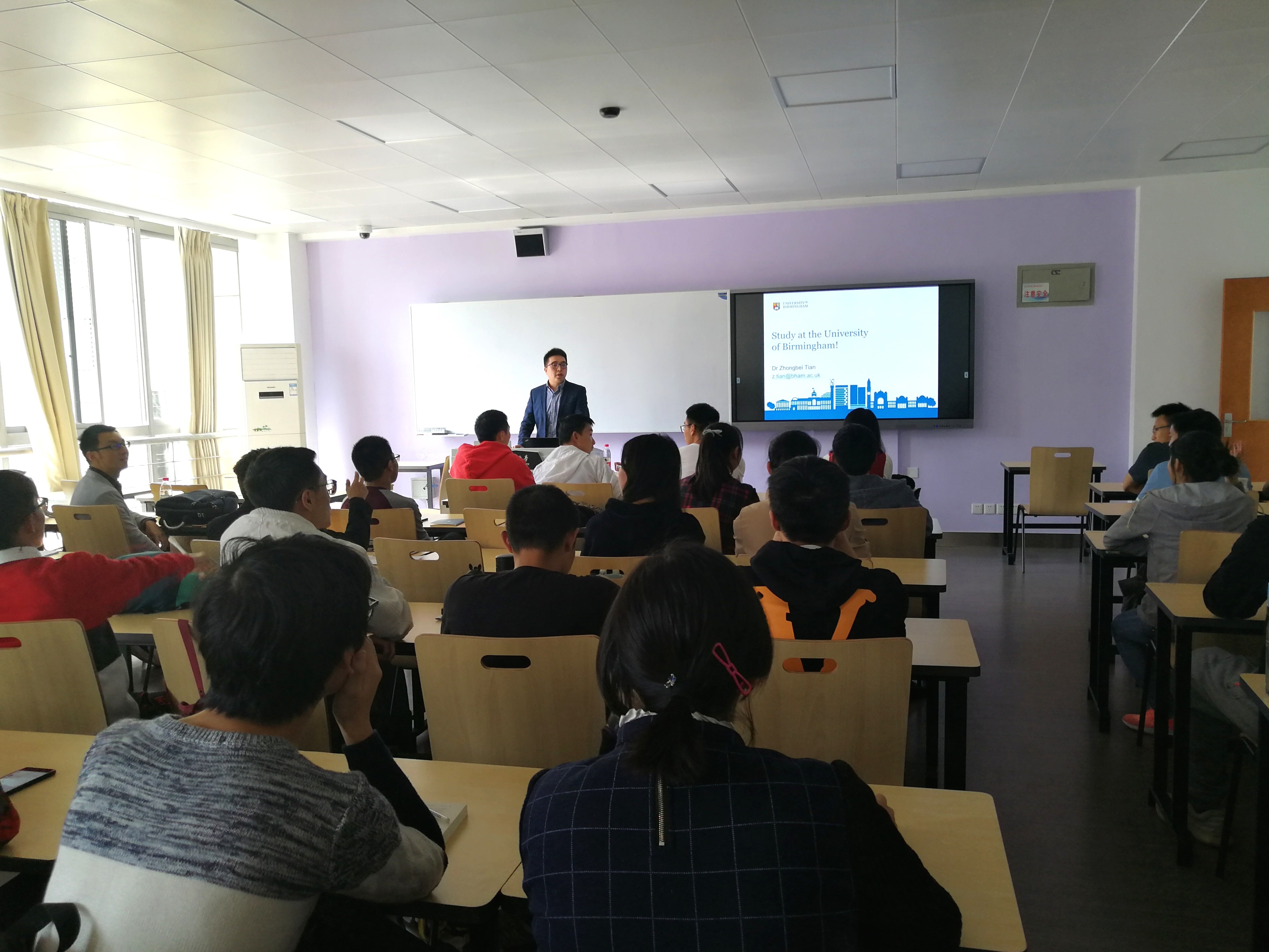 10月25日下午,英国伯明翰大学在江安校区第一教学楼D座407为公司本科生举行了3+2、2+2联合培养项目的宣讲会。伯明翰大学招生专员田忠北博士为同学们作了精彩的宣讲。