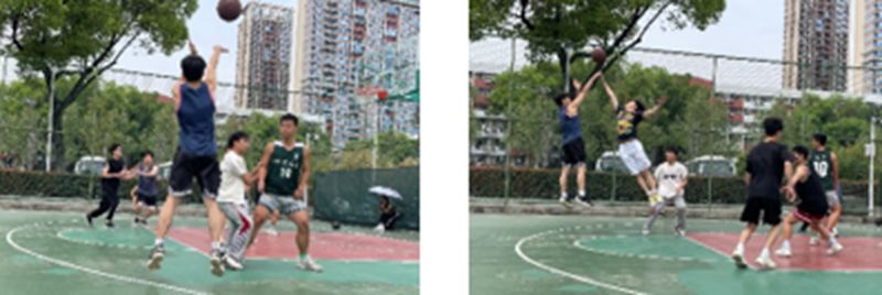 比赛正式开始,参赛选手们本着“友谊第一,比赛第二”的原则,全力投入到比赛中来。天气炎热,但参与同学们的比赛热情丝毫没有受到影响,不畏对手,全力拼搏。三分的空心入网是那么的清脆利落,交叉步的突破是如此的赏心悦目;叫挡拆、绕掩护、空切顺下、突破分球,队员们配合默契,将平时训练时的战术全部都发挥了出来。参赛队员们感受着篮球带来的快乐,享受着篮球的魅力,无论是哪位选手得分后,都会获得最真挚、热烈的掌声与欢呼,现场洋溢着青春和欢乐的氛围。