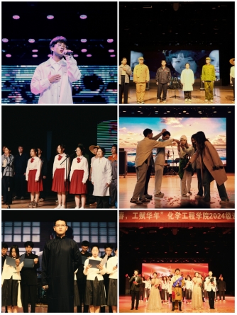 第三篇章“赤子之心”展现化工学子的赤诚之心。《无名的人》《如愿》彰显出同学们对功勋人物的敬意与歌颂;《追梦赤子心》展现出对梦想的执着与追求;最后,师生挥舞国旗唱响《我和我的祖国》,表达对祖国母亲繁荣昌盛的美好祝愿。