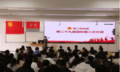 活动伊始,全体同学起立奏唱中国共产主义青年团团歌。