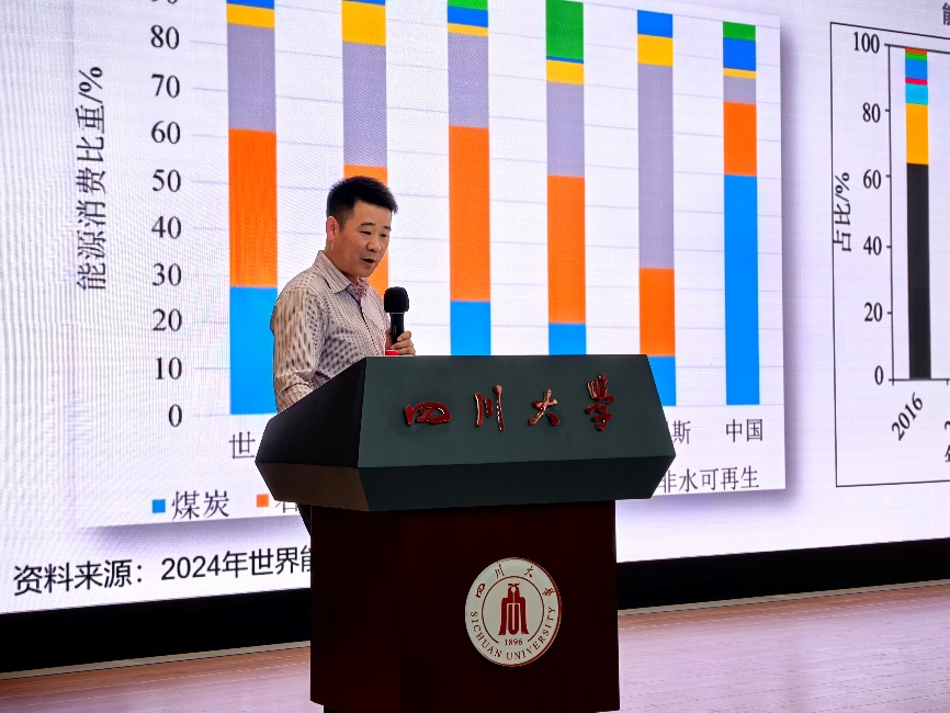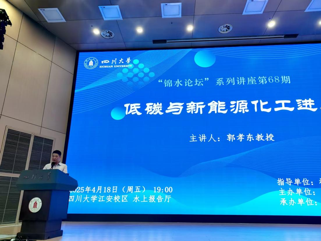 为深度契合习近平总书记关于科技创新的重要指示精神,培养公司老员工“以青春之我,担强国重任”的责任感和使命感,进一步加强青年员工对化工行业发展和新能源、新材料前景的理解和认识,2025年4月18日晚,公司“锦水论坛”第68期“低碳与新能源化工进展”主题讲座在江安校区第一教学楼水上报告厅如期举行。本次讲座邀请Mksport体育经理郭孝东教授作为主讲嘉宾,面向来自19个公司的近400名员工进行授课和交流互动。公司辅导员帕哈尔定和李珍珍老师参与了本次讲座。