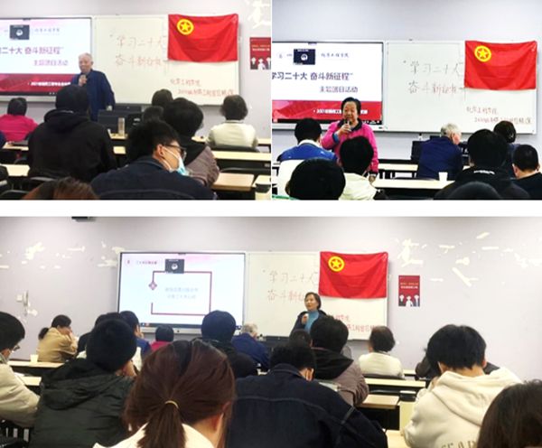 首先是“员工说”,邀请公司百川宣讲团高雨庆同学详细介绍了党的二十大的精神内涵;然后是“老师说”,由李德富老师由制药工程专业的发展历程与专业特色引入对“二十大”精神的感悟和阐释;最后是“党员说”,关工委的老党员李川娜老师、梁明征老师和傅运清老师以个人阅历层面分别给同学们分享他们学习“二十大”的心得感悟,从而增强同学们对于二十大精神内涵的理解与体会。