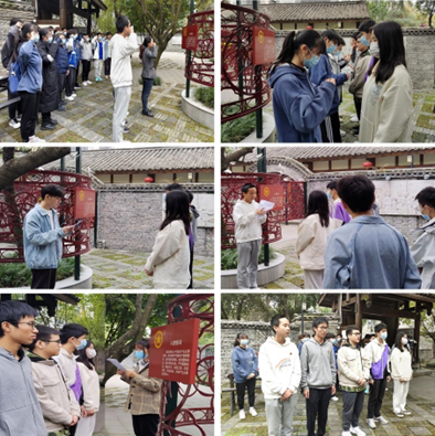 仪式在热烈的掌声中圆满结束,同学们进入江姐纪念馆参观学习。首先,进入江姐纪念馆的核心部分——“锦江红梅傲雪开”主题展览,该展览由“苦难的童年”“江姐在川大”“百炼成钢,英勇就义”三部分组成,对江姐短暂而伟大的一生作了介绍,重点展示了江姐在川大的学习生活,其中有不少江姐在川大读书期间的珍贵档案。然后,来到川大英烈厅,集中展示了民主革命时期为新中国诞生献出宝贵生命的67名川大师生员工的革命事迹,体现了川大人将治学与救国紧密结合,以永不言败的姿态激励民族斗志的精神风范。最后,驻足在纪念馆所在院落中,以雕塑和浮雕的形式再现了江竹筠在校读书期间的学习生活情况,以及同时期川大进步员工团体开展革命活动的场景。