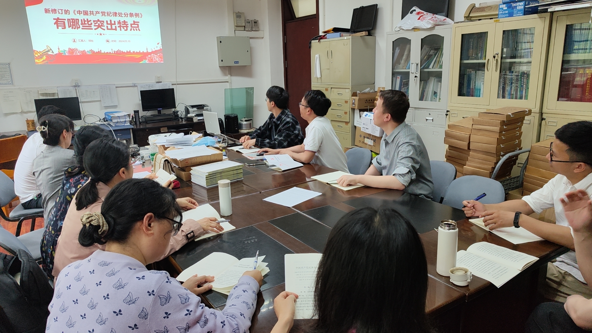 首先邓怡为全体党员教师上了一堂生动而深刻的党课,重点讲解了《中国共产党纪律处分条例》。此次党课不仅加深了教师们对党的纪律要求的理解,也激发了大家更加严格自律、恪守职责的决心。党课上,邓怡书记从条例的出台背景、主要内容和实施意义等方面进行了全面阐述。他强调,作为共产党员,必须时刻保持清醒的头脑,严格遵守党的纪律,做到心中有党、行动有规。
