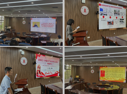 接着,在党纪专题学习组织生活会上,支部纪律委员唐文翔同志带领大家集体学习了新修订的《中国共产党纪律处分条例》。他重点对比了《条例》与2015年《条例》的变化,介绍了《条例》的八大特点及处分规章制度,并结合典型案例,强调了高校教师应该引以为戒,牢固树立底线意识,自觉践行党的纪律要求。