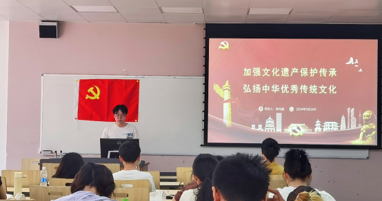 然后,陈桂鑫同志基于《求是》杂志刊发的习近平总书记的重要文章《加强文化遗产保护传承,弘扬中华优秀传统文化》,以“加强文化遗产保护传承 弘扬中华优秀传统文化”为主题,阐述了加强文化遗产保护传承的重大意义、文化遗产保护传承的要求和进一步建立健全文化遗产保护传承的体制机制。新时代新征程上,我们要自觉扛起保护历史文化遗产的重任,更好担负起新的文化使命,为强国建设、民族复兴伟业提供强大精神动力!