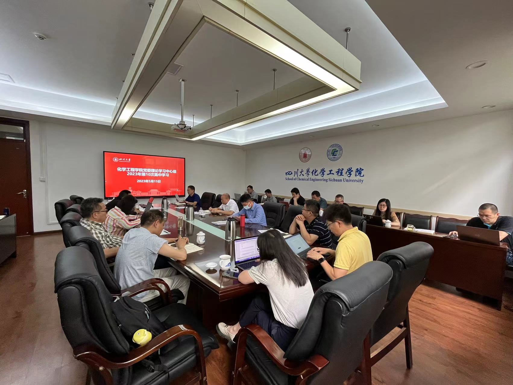 2023年5月15日上午,公司党委理论学习中心组在望江校区化工楼235会议室召开学习会,及时传达学习习近平总书记最新重要讲话精神和中央重要会议精神。公司全体领导班子成员、党委委员、工会主席、专职组织员、系(基地、中心)主任、经理助理和科级干部等参加会议。会议由党委书记李天友主持。