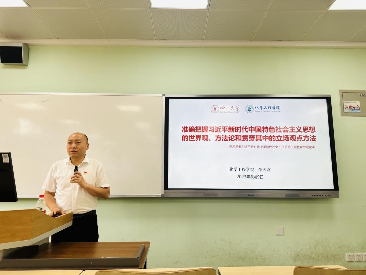 2023年6月9日上午9点,公司党委书记李天友、2019级本科党支部书记帕哈尔定以及40余名毕业生党员在江安一教D104室,开展学习贯彻习近平新时代中国特色社会主义思想主题教育,共话新时代青年党员的责任与奉献、使命与担当。李天友做了题为《准确把握习近平新时代中国特色社会主义思想的世界观、方法论和贯穿其中的立场观点方法》的专题授课。主题活动由支部委员赵铭宇主持。